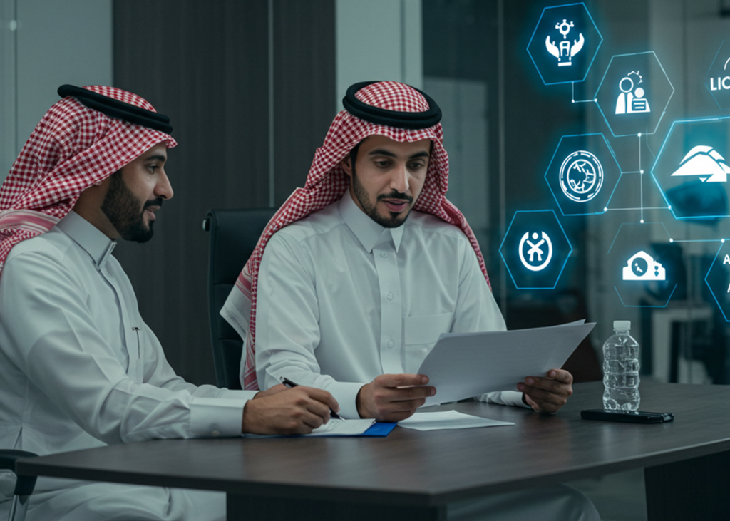 تشمل خدمات التراخيص والامتثال النظامي جميع الإجراءات اللازمة لضمان توافق الشركات والأعمال مع الأنظمة والقوانين المعمول بها. وتتضمن استخراج وتجديد التراخيص، التسجيل لدى الجهات الرسمية، الالتزام باللوائح التنظيمية، وإعداد التقارير الدورية لضمان الامتثال التام للمتطلبات القانونية، مما يعزز استقرار الأعمال ويجنبها المخاطر النظامية.